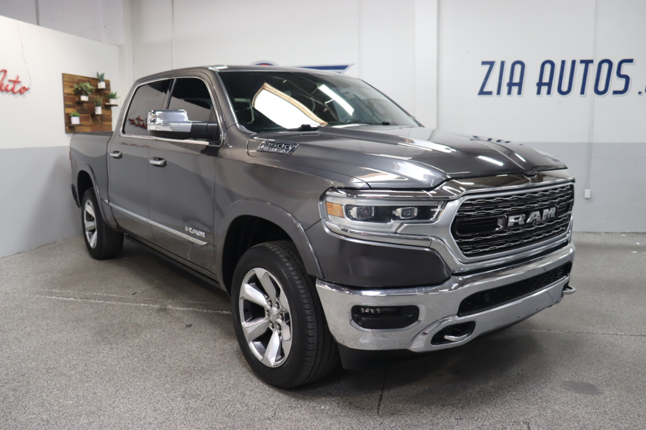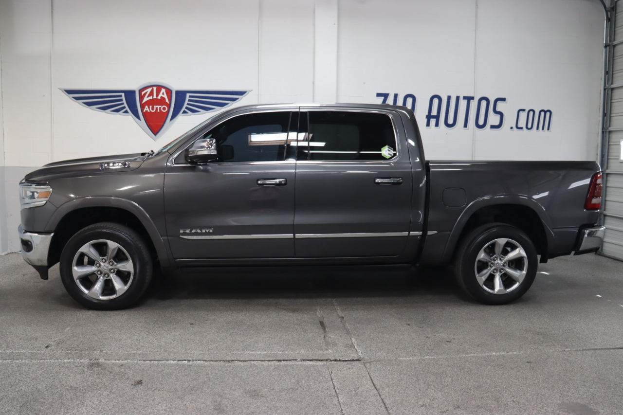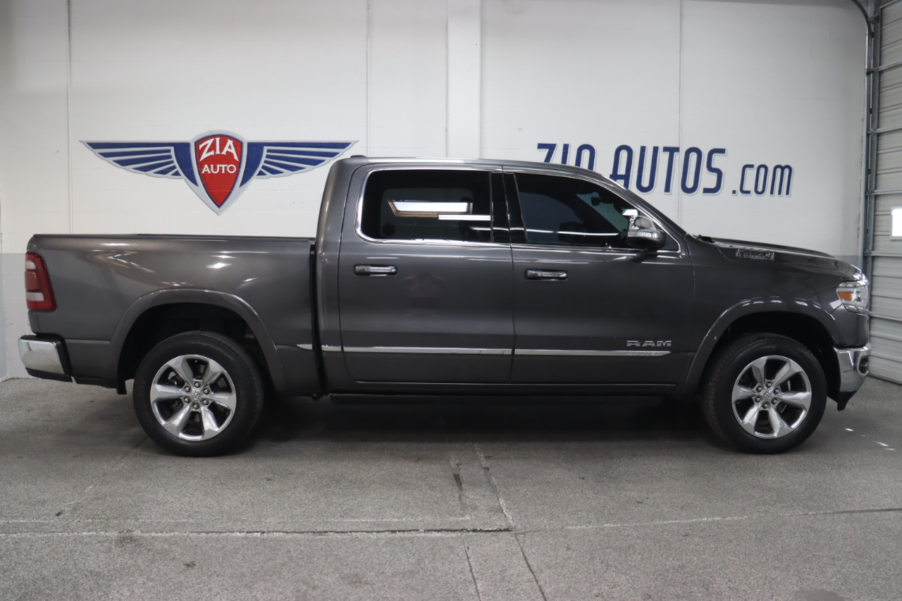 Enjoy hardcore capability in our 2019 RAM 1500 Limited Crew Cab 4X4 that's ready to make a strong impression in Granite Crystal Metallic! Motivated by a 5.7 Liter HEMI V8 that offers 395hp matched to a responsive 8 Speed Automatic transmission for amazing towing capability. This Four Wheel Drive truck also delivers steady handling on the road or the trail thanks to an active air suspension, and it achieves nearly 21mpg on the highway while showing off a design that evokes power and prestige with LED lighting, fog lamps, power running boards, and bold alloy wheels.Even when it's hard at work, our Limited lets you relax with leather heated/ventilated front and rear seats, a leather heated steering wheel, power-adjustable pedals, dual-zone automatic climate control, and advanced technology anchored by an 8.4-inch touchscreen. Use that or voice control to manage full-color navigation, Android Auto®, Apple CarPlay®, Bluetooth®, WiFi compatibility, and a 10-speaker Alpine audio system. And you and your whole crew will love the cab's roomy interior dimensions!Further confidence comes from RAM safety features such as a backup camera, blind-spot monitor, parking sensors, tire-pressure monitoring, hill-start assist, trailer-sway control, and advanced multistage front airbags. With all that and more, getting carried away with our impressive 1500 Limited is easy. Save this Page and Call for Availability. We Know You Will Enjoy Your ZIA Auto Test Drive Towards Ownership!