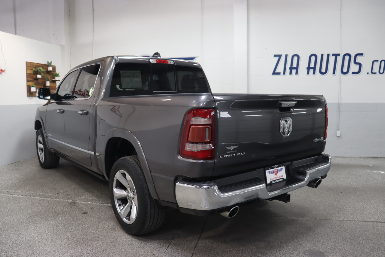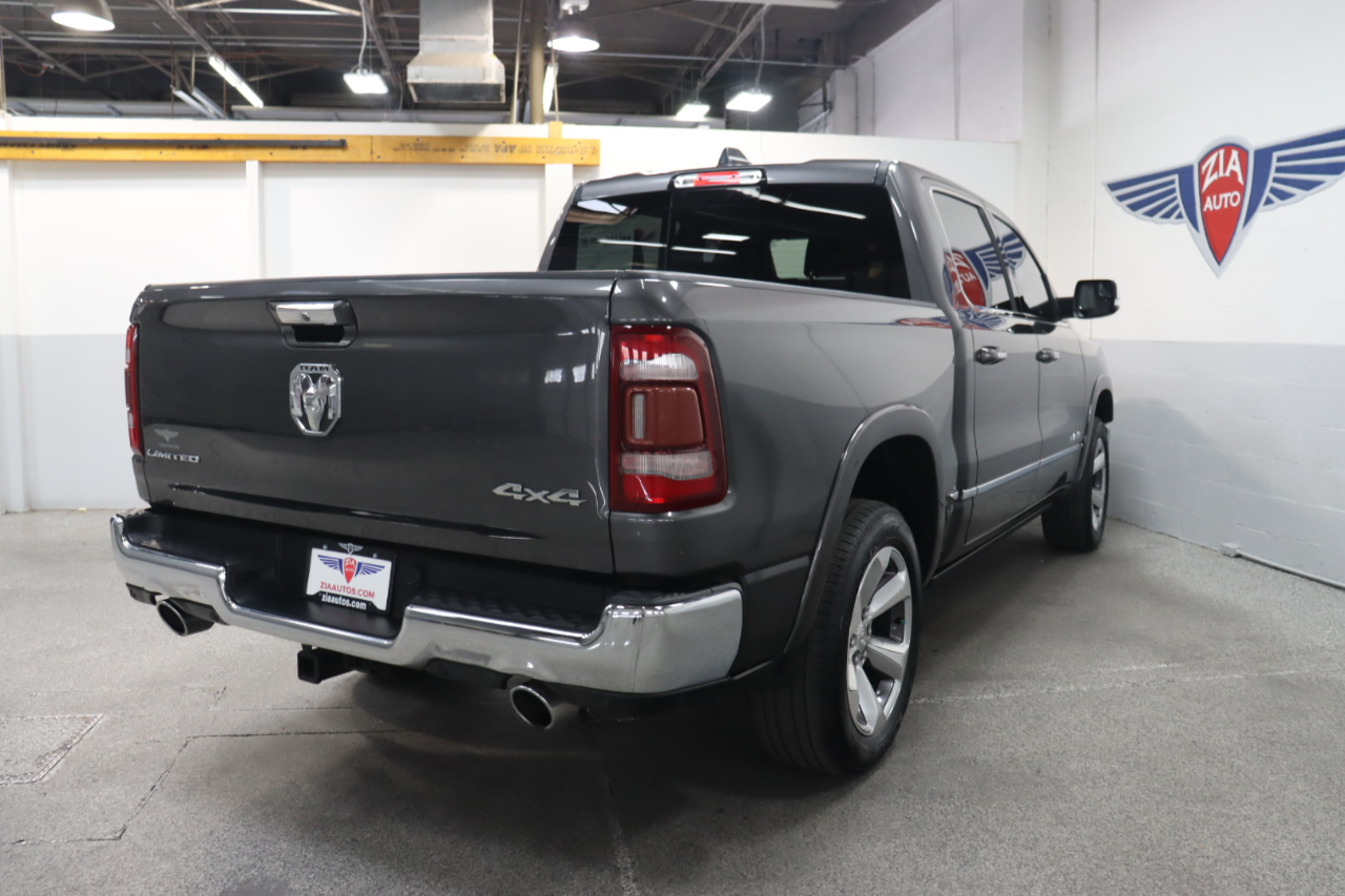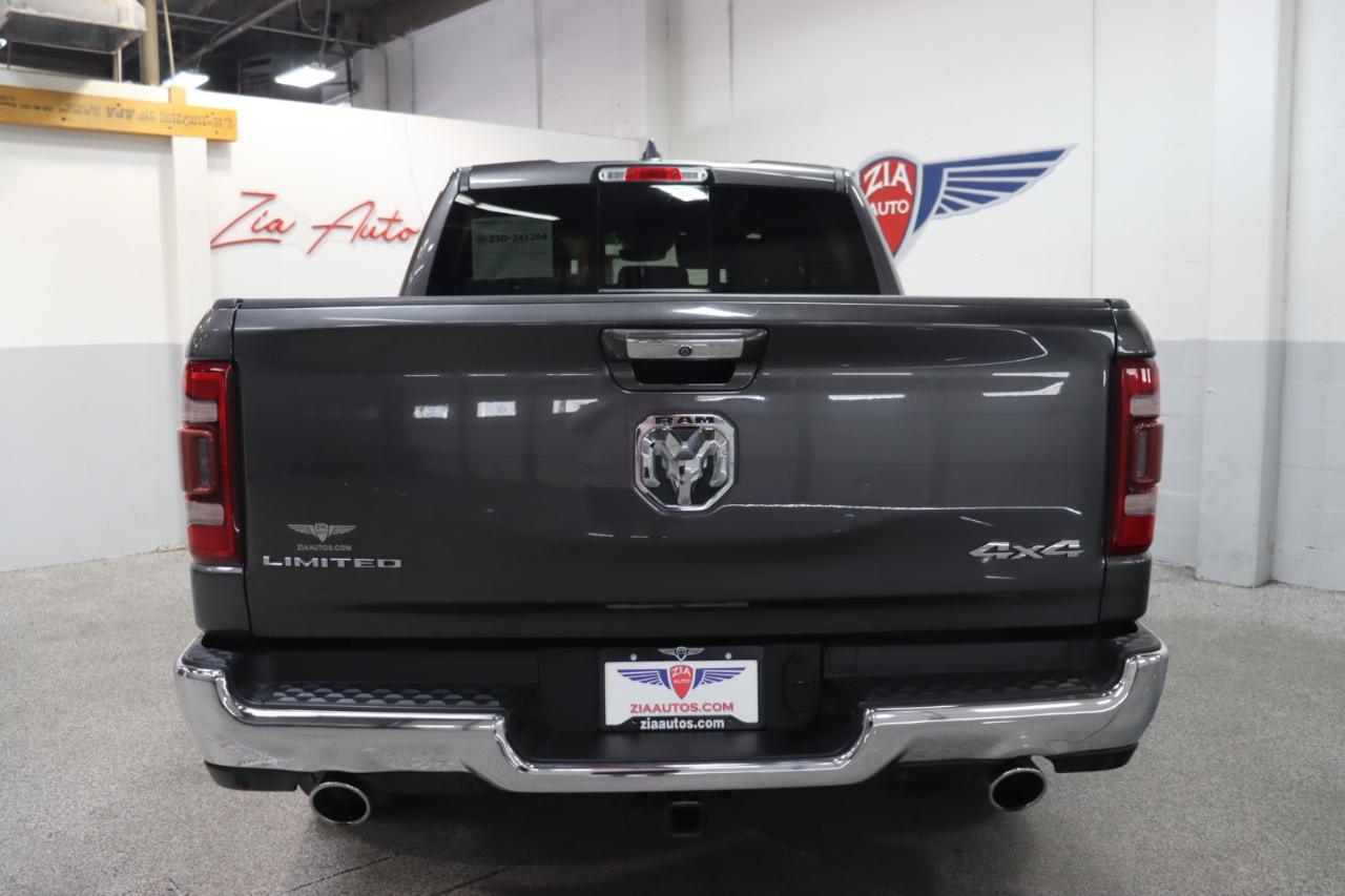 Enjoy hardcore capability in our 2019 RAM 1500 Limited Crew Cab 4X4 that's ready to make a strong impression in Granite Crystal Metallic! Motivated by a 5.7 Liter HEMI V8 that offers 395hp matched to a responsive 8 Speed Automatic transmission for amazing towing capability. This Four Wheel Drive truck also delivers steady handling on the road or the trail thanks to an active air suspension, and it achieves nearly 21mpg on the highway while showing off a design that evokes power and prestige with LED lighting, fog lamps, power running boards, and bold alloy wheels.Even when it's hard at work, our Limited lets you relax with leather heated/ventilated front and rear seats, a leather heated steering wheel, power-adjustable pedals, dual-zone automatic climate control, and advanced technology anchored by an 8.4-inch touchscreen. Use that or voice control to manage full-color navigation, Android Auto®, Apple CarPlay®, Bluetooth®, WiFi compatibility, and a 10-speaker Alpine audio system. And you and your whole crew will love the cab's roomy interior dimensions!Further confidence comes from RAM safety features such as a backup camera, blind-spot monitor, parking sensors, tire-pressure monitoring, hill-start assist, trailer-sway control, and advanced multistage front airbags. With all that and more, getting carried away with our impressive 1500 Limited is easy. Save this Page and Call for Availability. We Know You Will Enjoy Your ZIA Auto Test Drive Towards Ownership!