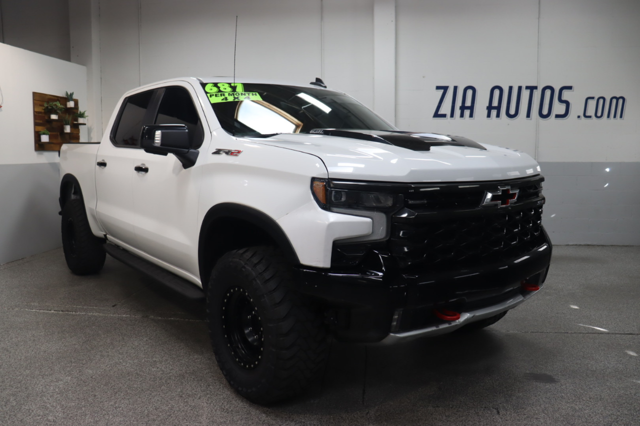 Born for the trail, our 2022 Chevrolet Silverado 1500 ZR2 Crew Cab 4X4 Short Bed is here to answer the call of the wild in Summit White! Motivated by a 6.2 Liter EcoTec3 V8 delivering 420hp to a 10 Speed Automatic transmission so you can be at your best off the beaten path. This Four Wheel Drive truck goes even further with an exclusive high-performance lifted suspension, locking front/rear differentials, and Multimatic DSSV dampers, and it returns nearly 19mpg on the highway. Our Silverado also features LED lighting, fog lamps, red recovery hooks, alloy wheels, a raised hood, large skid plates, an off-road front bumper, and a black chrome grille.Our ZR2 cabin has exclusive styling of its own, complete with heated cloth power front seats, a leather-wrapped steering wheel, dual-zone automatic climate control, keyless access/ignition, a remote-start system, and high-tech Chevrolet help for staying connected to your world. Highlights include a 12.3 driver display, a 13.4-inch touchscreen, WiFi compatibility, Apple CarPlay®, Android Auto®, Bluetooth®, and a six-speaker sound system.Take on your world confidently, knowing intelligent Chevrolet safety systems such as HD surround vision, automatic braking, hitch guidance, a bed-view camera, lane-keeping assistance, side blind-zone alert, and more. Our 1500 Silverado ZR2 is too impressive to wait long! Save this Page and Call for Availability. We Know You Will Enjoy Your ZIA Auto Test Drive Towards Ownership!