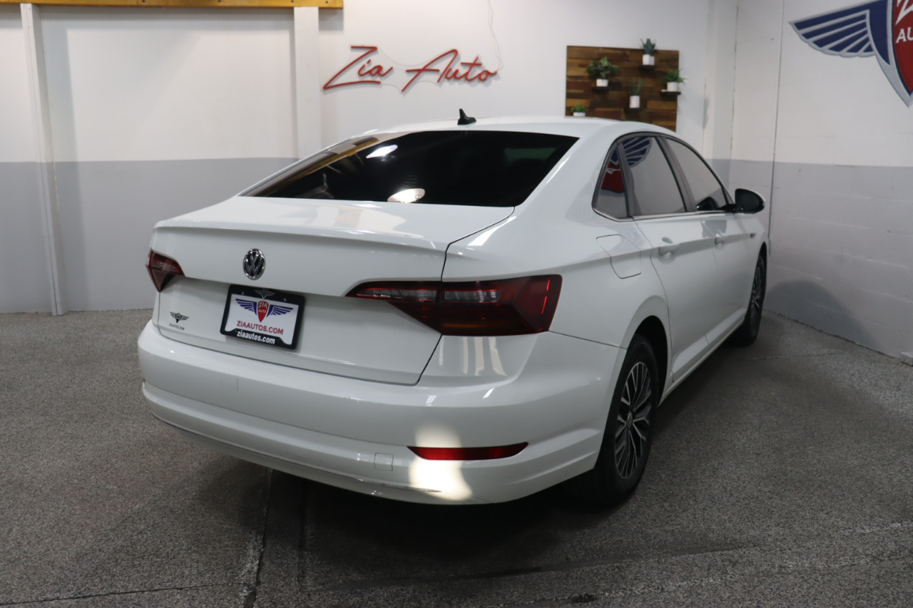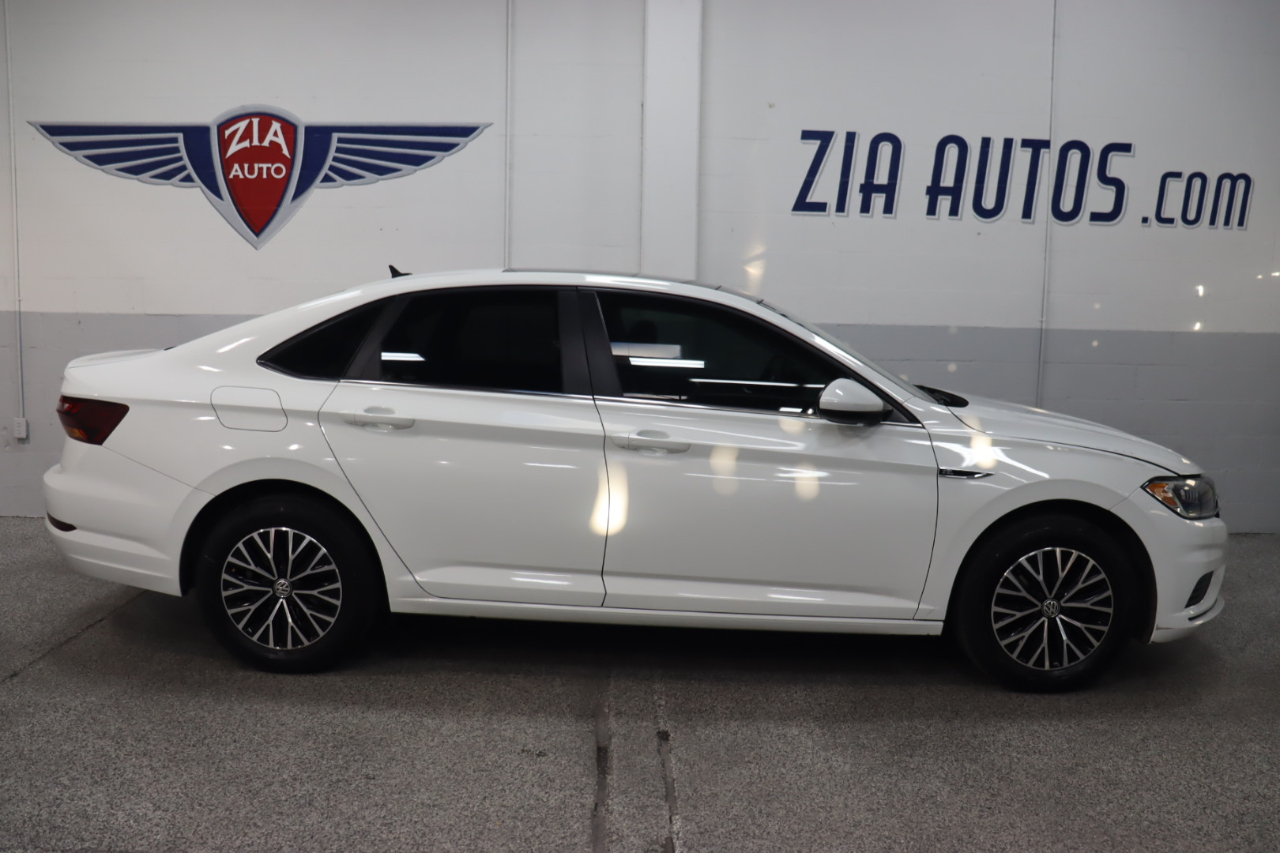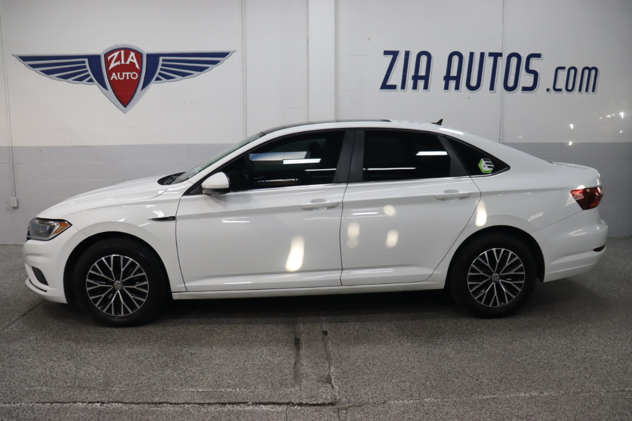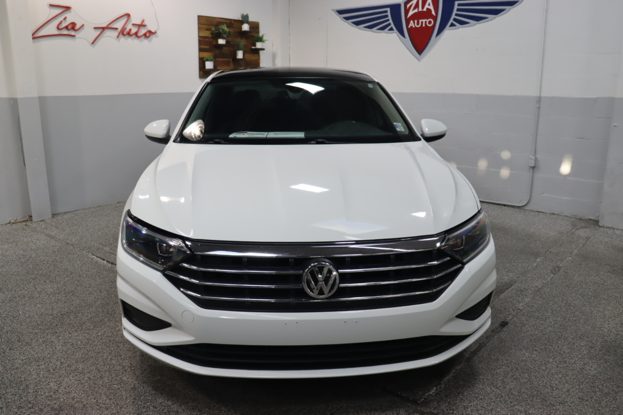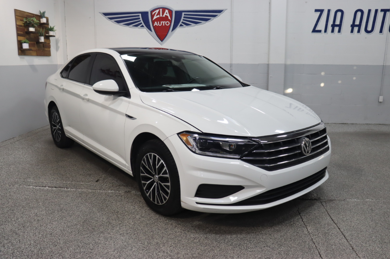 Our exciting 2019 Volkswagen Jetta SEL Sedan looks great in Pure White! Powered by a TurboCharged 1.4 Liter 4 Cylinder offers 147hp connected to an 8 Speed Automatic transmission. This Front Wheel Drive sedan helps you score nearly 40mpg on the highway, assuring reasons to get out and drive! Roll up in style behind the wheel of our Jetta SEL that's perfectly accented by LED lighting, a massive sunroof, and distinctive alloy wheels.SEL offers heated leatherette seating surfaces, a multi-function steering wheel, and a rearview camera. Thanks to Beats Audio with subwoofer and Bluetooth® connectivity, staying connected is a breeze. Add a full-color touchscreen with available satellite radio, full-color Navigation, and Volkswagen Car-Net App-Connect.Our Volkswagen offers top safety rating thanks to ABS, stability/traction control, reinforced safety cage construction, advanced airbags, an intelligent crash response system, adaptive cruise control, blind-spot monitoring, and more! Boasting stand-out style, efficient performance, and great amenities, our Jetta SEL sedan is a compelling package you'll love for years! Save this Page and Call for Availability. We Know You Will Enjoy Your ZIA Auto Test Drive Towards Ownership!