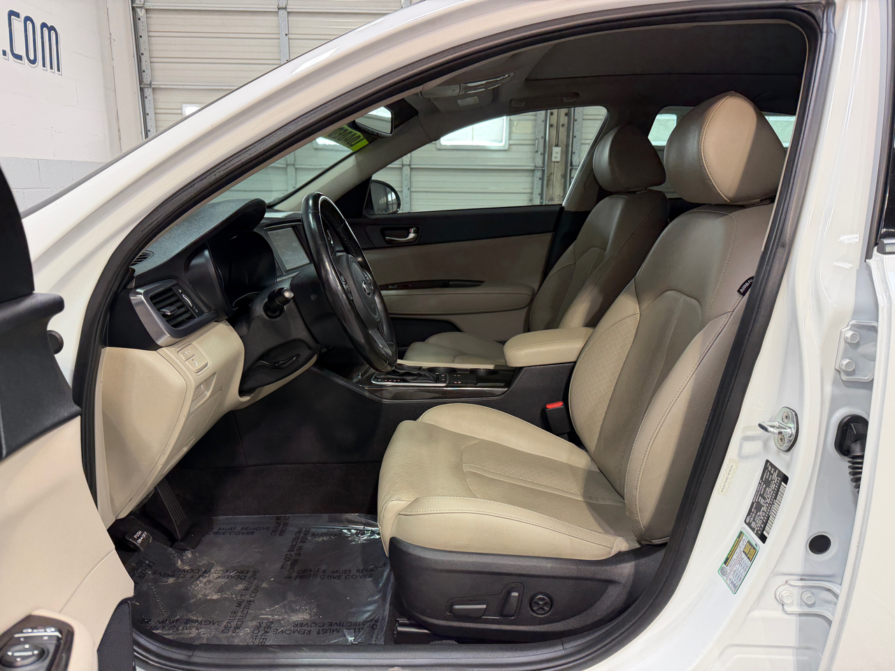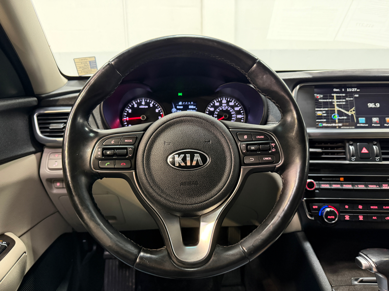 Admire the trendsetting sleek design and wealth of amenities included in our 2017 Kia Optima EX Sedan that's a knockout in Snow White Pearl! Motivated by a 2.4 Liter 4 Cylinder that offers 185hp with a 6 Speed Automatic transmission. This Front Wheel Drive sedan delivers on its promises - scoring nearly 34mpg on the highway and delighting drivers with incredible handling and comfort. Designed to inspire, our Optima EX turns heads with its unique grille, dual projector beam headlights, alloy wheels, and chrome exhaust tip. Behind the wheel of our EX, you'll admire the smart design with elegant style and useful innovations. Settle into heated leather seats with memory functions, grip the heated steering wheel, and enjoy amenities such as pushbutton start, a rear camera display, dual-zone automatic climate control, and power windows/locks. Connecting to your digital world is easy with our UVO eServices infotainment, touchscreen audio, Bluetooth®, and smartphone integration. Our Kia has received top safety scores with its excellent engineering and features such as ABS, stability/traction control, advanced airbags, and tire pressure monitoring. Serving up driving excitement, security, style, and so much more, the Optima EX sedan is a smart choice you'll love for years to come! Save this Page and Call for Availability. We Know You Will Enjoy Your Test Drive Toward Ownership!
