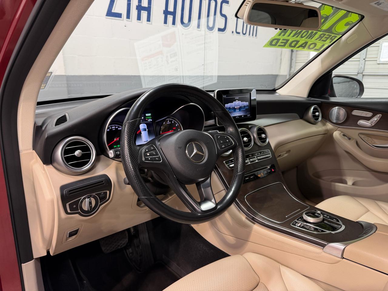 Our incredible 2019 Mercedes-Benz GLC 300 4MATIC® is outstanding in Cardinal Red Metallic! Fueled by a TurboCharged 2.0 Liter 4 Cylinder that offers 241hp connected to a paddle-shifted 9 Speed Automatic transmission. Tailor this Four Wheel Drive SUV with Dynamic Select, and enjoy sharp handling and ultimate comfort thanks to Agility Control while scoring nearly 28mpg on the road. Our GLC 300 has a muscular stance that refuses to blend in with its gorgeous wheels, anodized roof rails, and a power liftgate.Indulgent to all your senses, the masterfully crafted GLC 300 cabin greets you with a wealth of amenities, including a keyless start, 14-way power heated leather driver seat, dual-zone automatic climate control, HomeLink, 40/20/40 split rear seats, and even a refined cargo compartment. Get acquainted with our central controller/prominent color display with navigation, premium sound system with FrontBass, Bluetooth®, and our Media Interface that puts all your favorite music right at your fingertips.Safety measures from Mercedes-Benz have been implemented to help you avoid and manage challenging driving situations. These include Collision Prevention Assist Plus, Crosswind Assist, Adaptive braking technology, Pre-safe, Attention Assist, rear camera, and 7-way airbag protection. Engineered with visionary design and fashionable function, our GLC 300 is a superb choice! Save this Page and Call for Availability. We Know You Will Enjoy Your ZIA Auto Test Drive Towards Ownership!