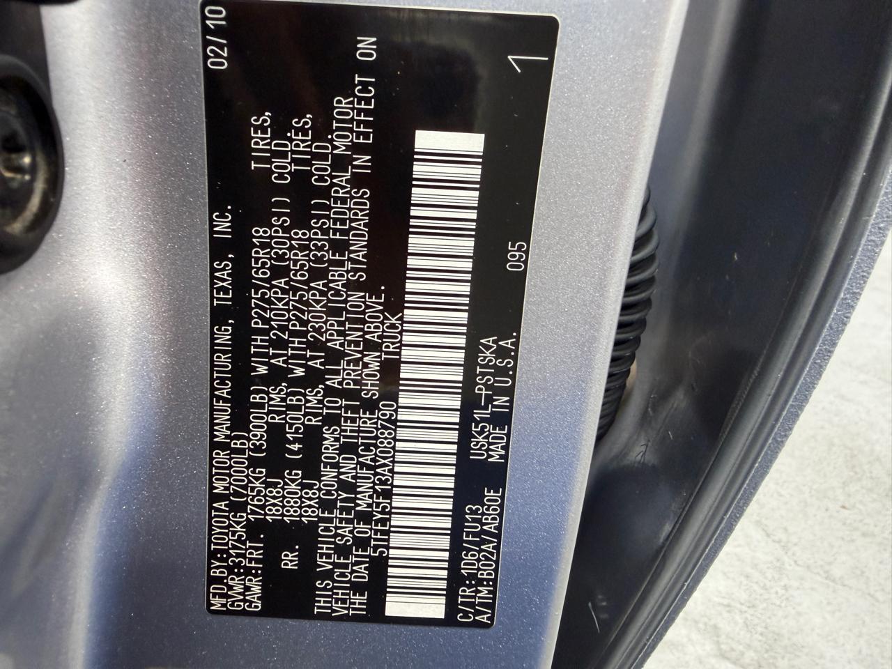 - 5TFEY5F13AX088790