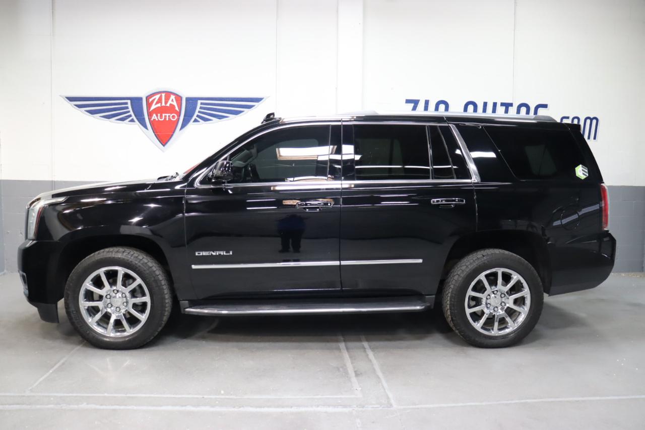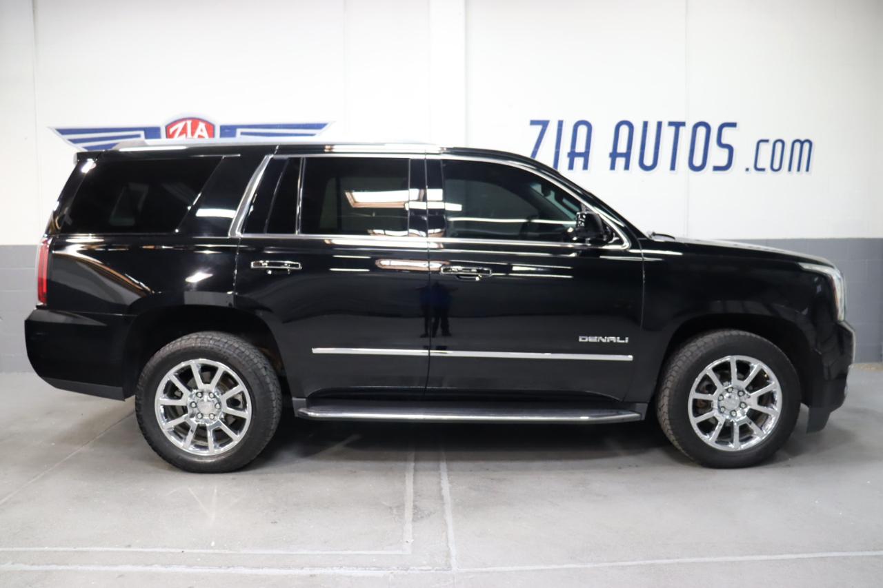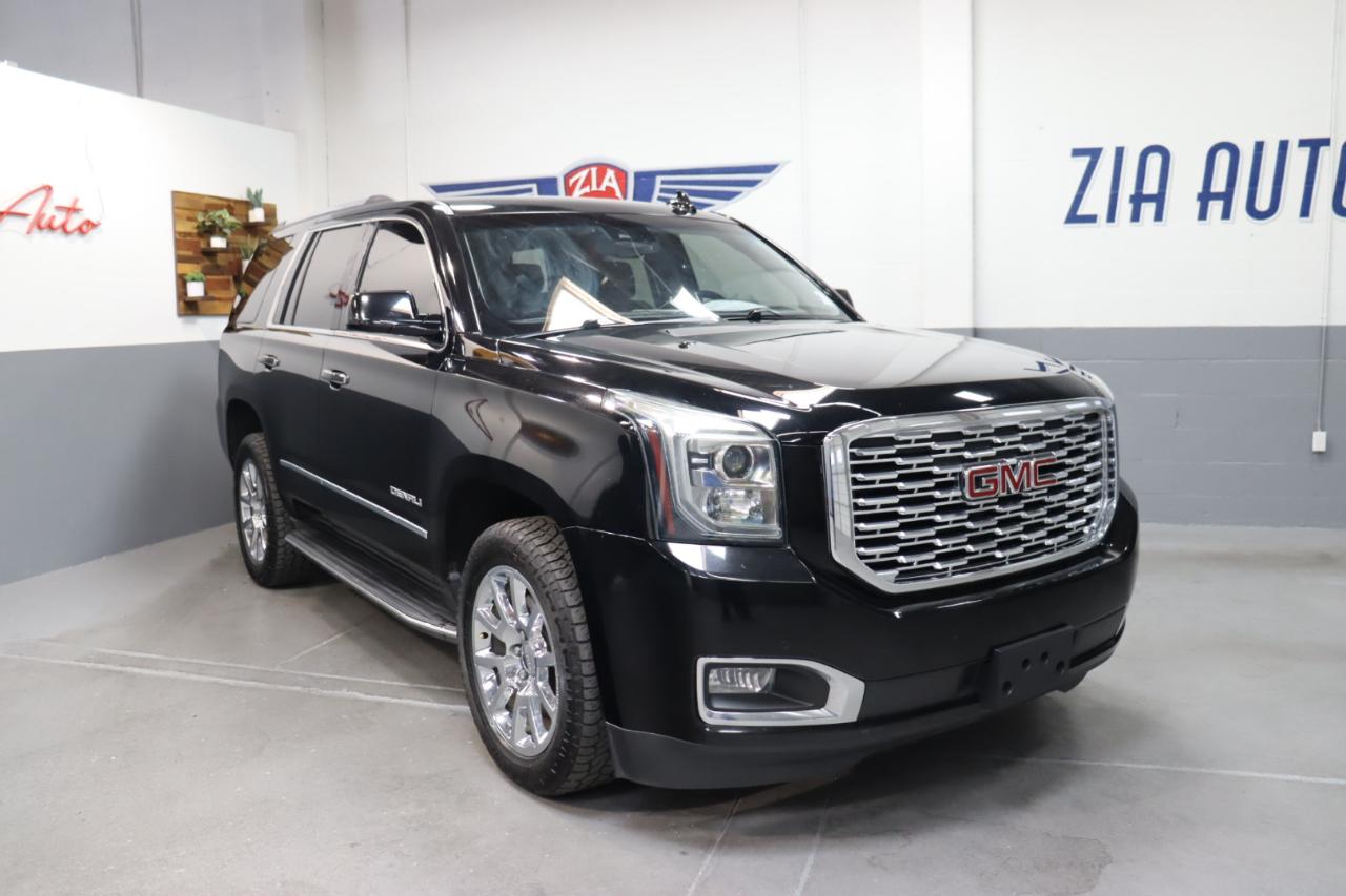 Our amazing 2019 GMC Yukon Denali 4WD is the pinnacle prestige, shown in Onyx Black! Powered by a 6.2 Liter EcoTec3 V8 that offers 420hp connected to a responsive 10 Speed Automatic transmission for astonishing pulling authority. This Four Wheel Drive SUV has been masterfully designed with Magnetic Ride Control to provide you with a refined, and smooth ride while boasting the power to tow plus scores nearly 23mpg on the highway. You can see that this Yukon Denali is a beautiful machine that has an unmistakable presence on the road with a gorgeous chrome grille and prominent wheels.Inside Denali, each detail has been carefully thought out to give you and your passengers a comfortable ride. Amenities abound, including a heated steering wheel, perforated leather-appointed heated/ventilated front seats, heated second-row seats, push-button start, and a hands-free power-programmable rear liftgate. Everyone will enjoy tri-zone automatic climate control, color touch navigation with IntelliLink, Bluetooth®, Apple CarPlay® compatibility, premium Bose audio, and available 4G WiFi!Our GMC enjoys a sterling reputation for safety and quality, offering peace of mind behind the wheel with forward collision alert, lane keep assist, side blind-zone alert, stability control, daytime running lamps, airbags, parking assist, a rear vision camera, and a tire-pressure monitor. In addition, Teen Driver configurable features let you monitor your teen's driving habits! Delivering full-size comfort and capability for your full-size life, our Yukon Denali is a smart choice! Save this Page and Call for Availability. We Know You Will Enjoy Your ZIA Auto Test Drive Towards Ownership!