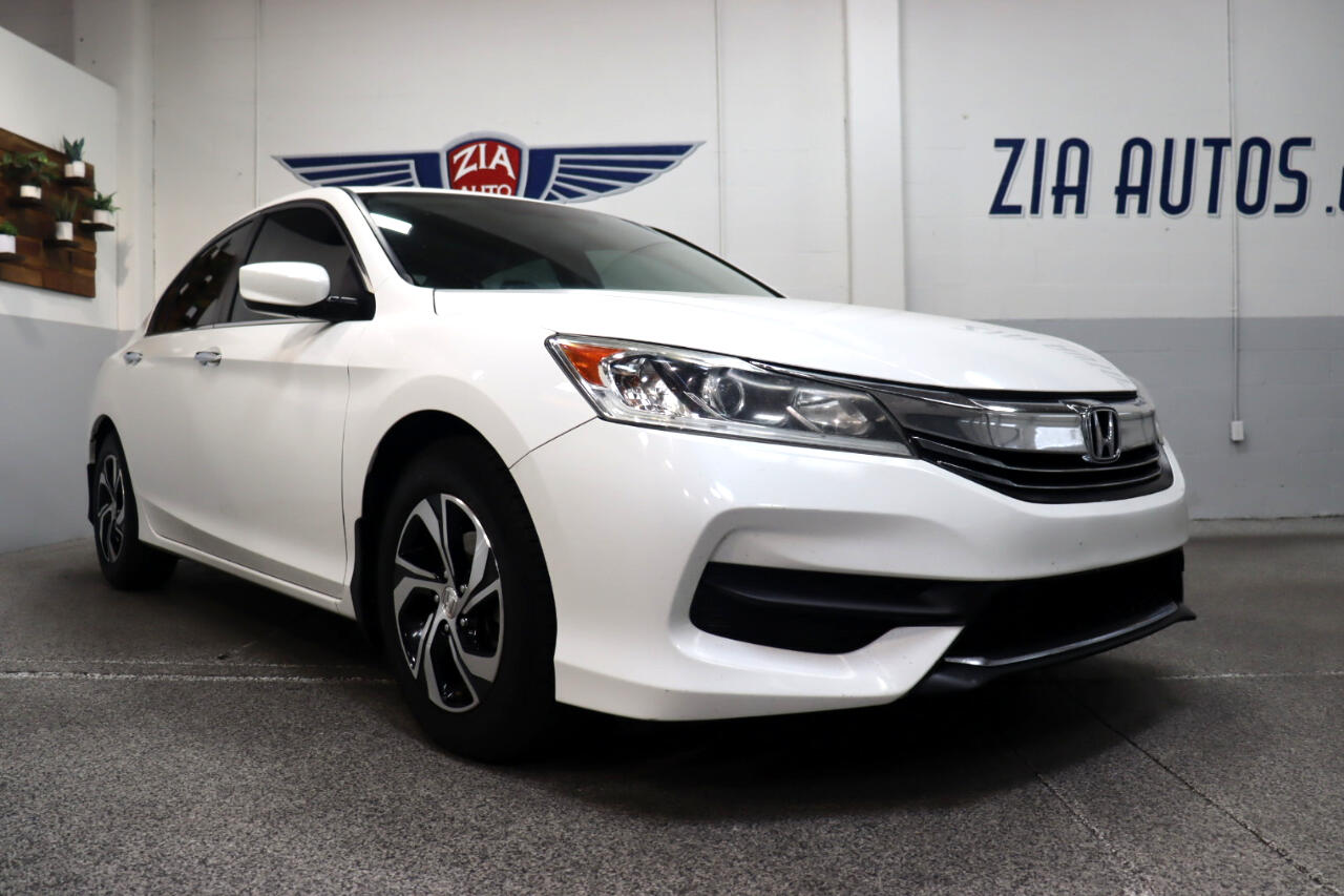 With a legacy of excellence, our 2017 Honda Accord LX Sedan is proudly presented in White Orchid Pearl! Powered by a 2.4 Liter 4 Cylinder that offers 185hp connected to a CVT for easy passing maneuvers. Comfortable and a pleasure to own and drive, our Front Wheel Drive sedan continually sets the benchmark for all other family sedans, rewarding its owners with nearly 36mpg on the road. Immediately eye-catching and irresistible, our Accord Sedan LX exudes classic good looks with modern sophistication.The interior of our LX is a haven of comfort and refinement, as it has been crafted with your needs and demands in mind. Please find comfort in our highly supportive seats as you take note of amenities such as a multi-angle rear camera, Bluetooth? Handsfree Link and Streaming Audio, and EcoAssist. This thoroughly modern machine is going to impress you at every turn!Our Honda is an exceptional blend of performance, efficiency, and amenities. Still, it also enjoys a sterling reputation for safety with ABS, stability/traction control, active front head restraints, front-seat side airbags, and side curtain airbags. This Accord LX sedan is a smart choice all around! Save this Page and Call for Availability. We Know You Will Enjoy Your ZIA Auto Test Drive Towards Ownership!