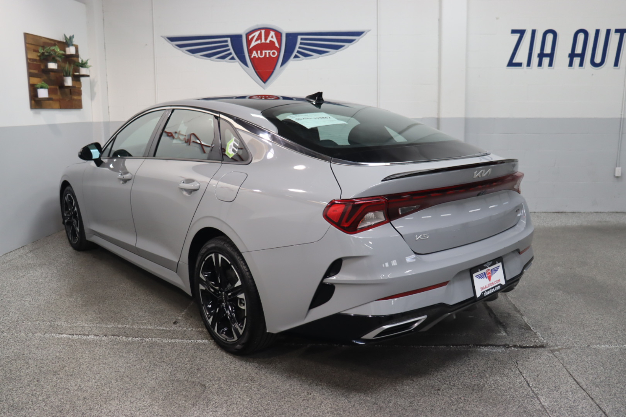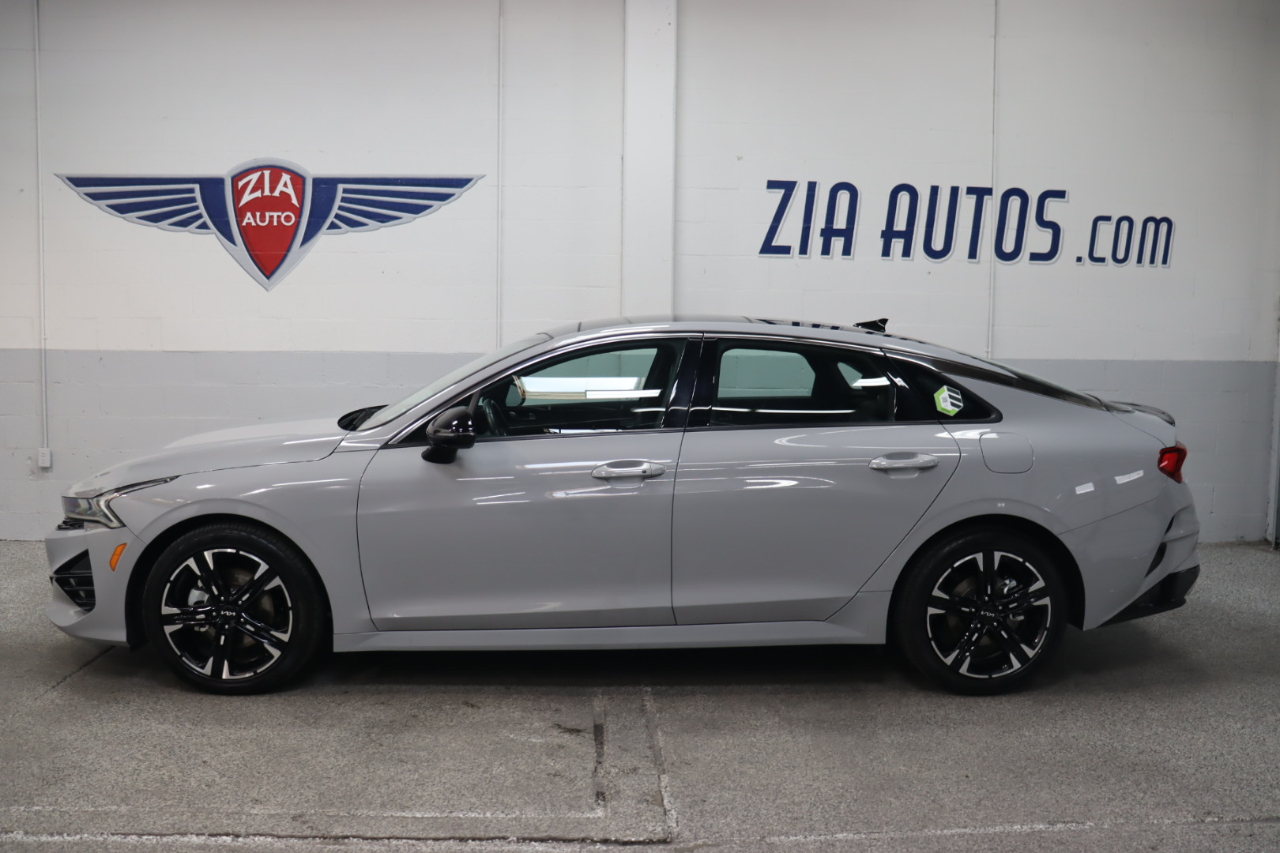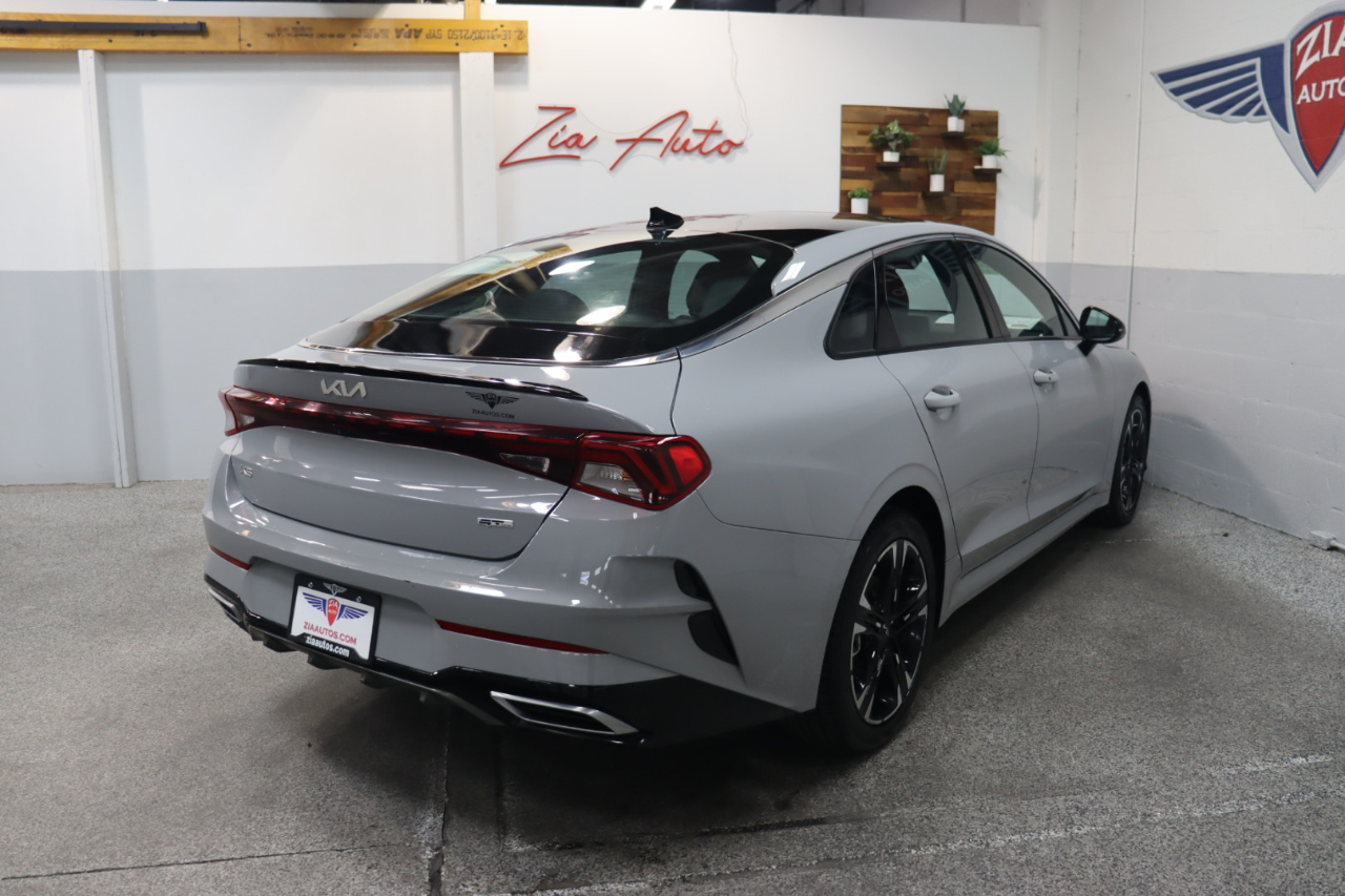 Own our 2023 Kia K5 GT-Line Sedan in Wolf Gray, and you can feel like you own the road! Powered by a TurboCharged 1.6 Liter 4 Cylinder providing 180hp tethered to an 8 Speed Automatic transmission with Drive Mode Select. That lets you dial in performance to meet your personal style, plus our Front Wheel Drive sedan returns nearly 37mpg on the highway. Aggressively detailed, this Kia K5 compels attention with bold GT body styling, LED lighting, fog lamps, a hands-free trunk, heated power mirrors, a gloss-black rear spoiler, and alloy wheels.Our GT-Line cabin inspires confidence with its comfortable cloth/leatherette seats, 10-way power for the driver, a leather flat-bottom steering wheel, dual-zone automatic climate control, remote start, keyless access/ignition, and rewarding technology so you can remain connected on the go. A 10.25-inch touchscreen is the highlight and supports full-color navigation, wireless charging, Android Auto®/Apple CarPlay®, Bluetooth®, and a six-speaker audio system.Kia's Drive Wise features deliver intelligent safety with a backup camera, a blind-spot monitor, automatic braking, forward collision warning, pedestrian detection, lane-keeping assistance, a driver attention monitor, and more. Come drive our K5 GT-Line and command the road ahead! Save this Page and Call for Availability. We Know You Will Enjoy Your ZIA Auto Test Drive Towards Ownership!