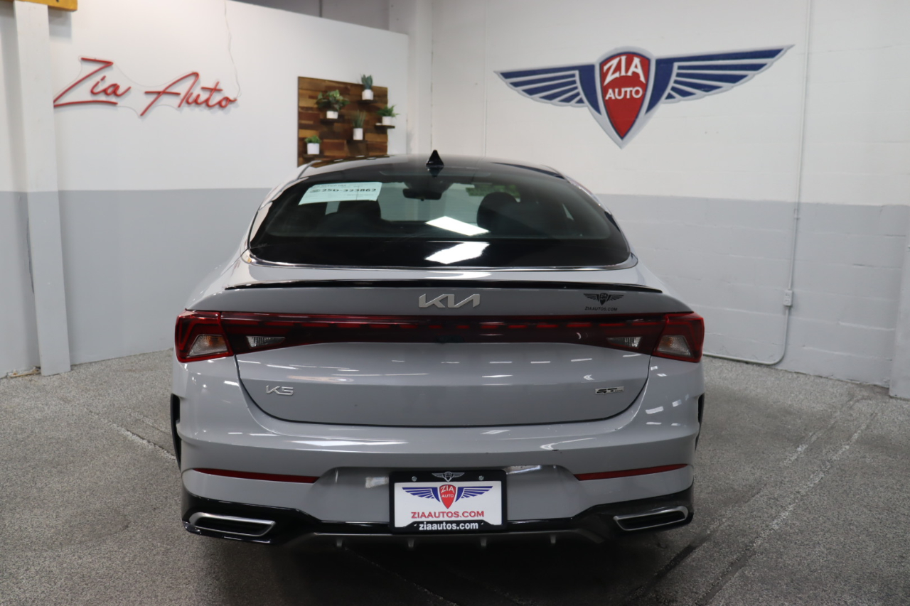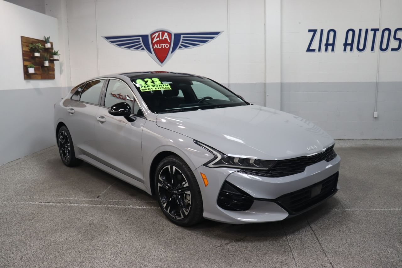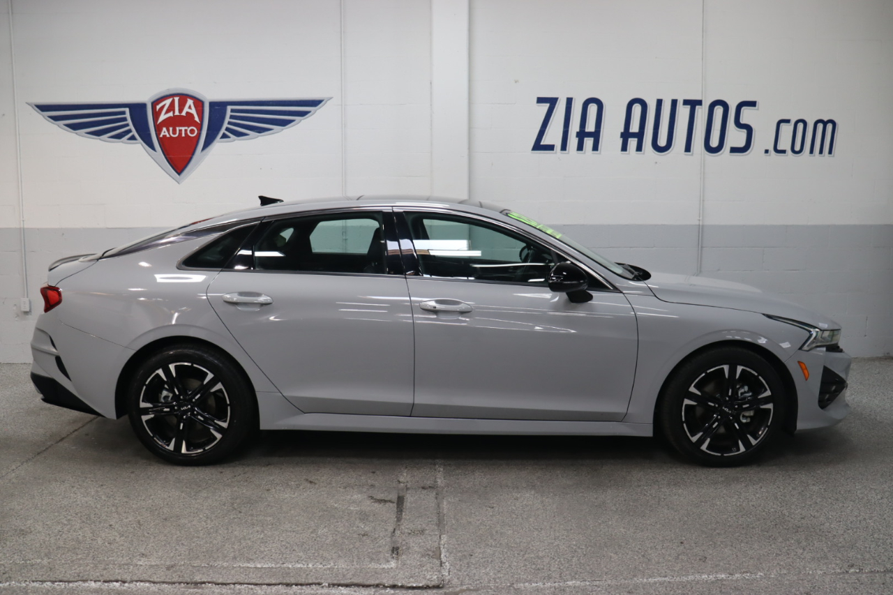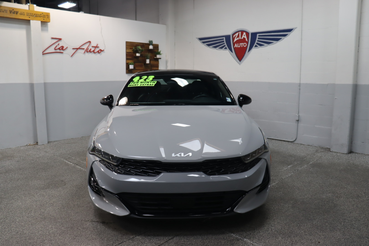 Own our 2023 Kia K5 GT-Line Sedan in Wolf Gray, and you can feel like you own the road! Powered by a TurboCharged 1.6 Liter 4 Cylinder providing 180hp tethered to an 8 Speed Automatic transmission with Drive Mode Select. That lets you dial in performance to meet your personal style, plus our Front Wheel Drive sedan returns nearly 37mpg on the highway. Aggressively detailed, this Kia K5 compels attention with bold GT body styling, LED lighting, fog lamps, a hands-free trunk, heated power mirrors, a gloss-black rear spoiler, and alloy wheels.Our GT-Line cabin inspires confidence with its comfortable cloth/leatherette seats, 10-way power for the driver, a leather flat-bottom steering wheel, dual-zone automatic climate control, remote start, keyless access/ignition, and rewarding technology so you can remain connected on the go. A 10.25-inch touchscreen is the highlight and supports full-color navigation, wireless charging, Android Auto®/Apple CarPlay®, Bluetooth®, and a six-speaker audio system.Kia's Drive Wise features deliver intelligent safety with a backup camera, a blind-spot monitor, automatic braking, forward collision warning, pedestrian detection, lane-keeping assistance, a driver attention monitor, and more. Come drive our K5 GT-Line and command the road ahead! Save this Page and Call for Availability. We Know You Will Enjoy Your ZIA Auto Test Drive Towards Ownership!