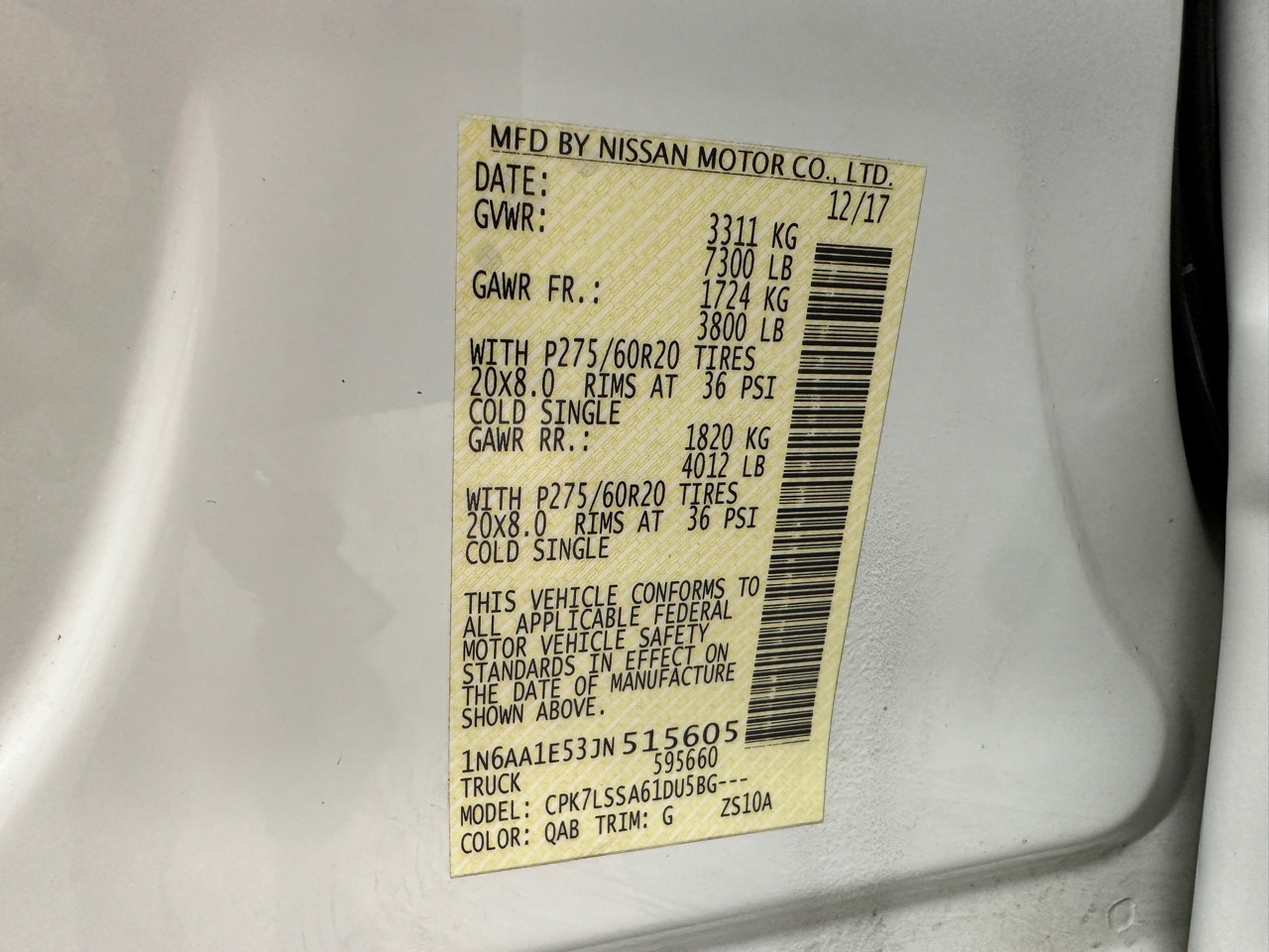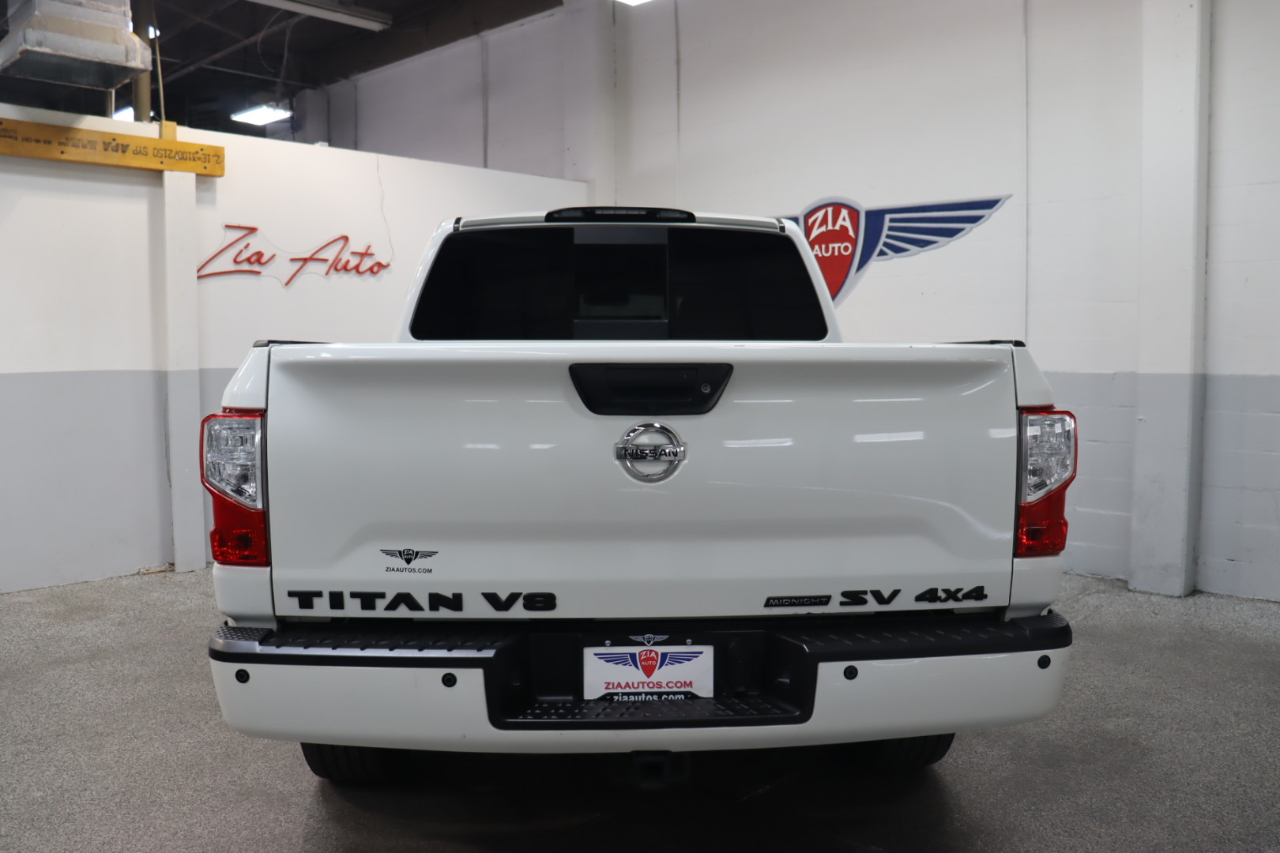 Our 2018 Nissan Titan SV Crew Cab 4X4 is everything you're looking for in Glacier White! Powered by a 5.6 Liter V8 that offers 390hp paired with a responsive 7 Speed Automatic transmission for all your passing or hauling needs. This Four Wheel Drive is easy to drive and helps you score nearly 20mpg on the highway while offering a smooth ride with massive payload and towing capabilities. Our Titan SV stands out from the pack and changes the way you see trucks with its chrome bumpers and grille. You'll see it means business with its bold looks and rugged styling!The interior of our SV features an innovative layout that gives you plenty of room for everything you need and the durability and versatility to help you work smarter. You'll appreciate remote keyless entry with a push-button start, an advanced drive-assist display, interior mood lighting, and a 40/20/40 split front bench seat with a center console. Our Titan keeps you connected thanks to Bluetooth®, NissanConnect, and an AM/FM/CD/MP3 display audio system with available satellite radio so you can sit back and relax while keeping your eyes safely on the road.Regarding safety, you can rest assured that your Nissan has been engineered with trailer sway control, the Nissan airbag system, ABS, vehicle dynamic control, traction control, zone body construction, and tire pressure monitoring. Step up to a traveling companion Titan SV that takes on the tough jobs with comfort and style! Save this Page and Call for Availability. We Know You Will Enjoy Your ZIA Auto Test Drive Towards Ownership!