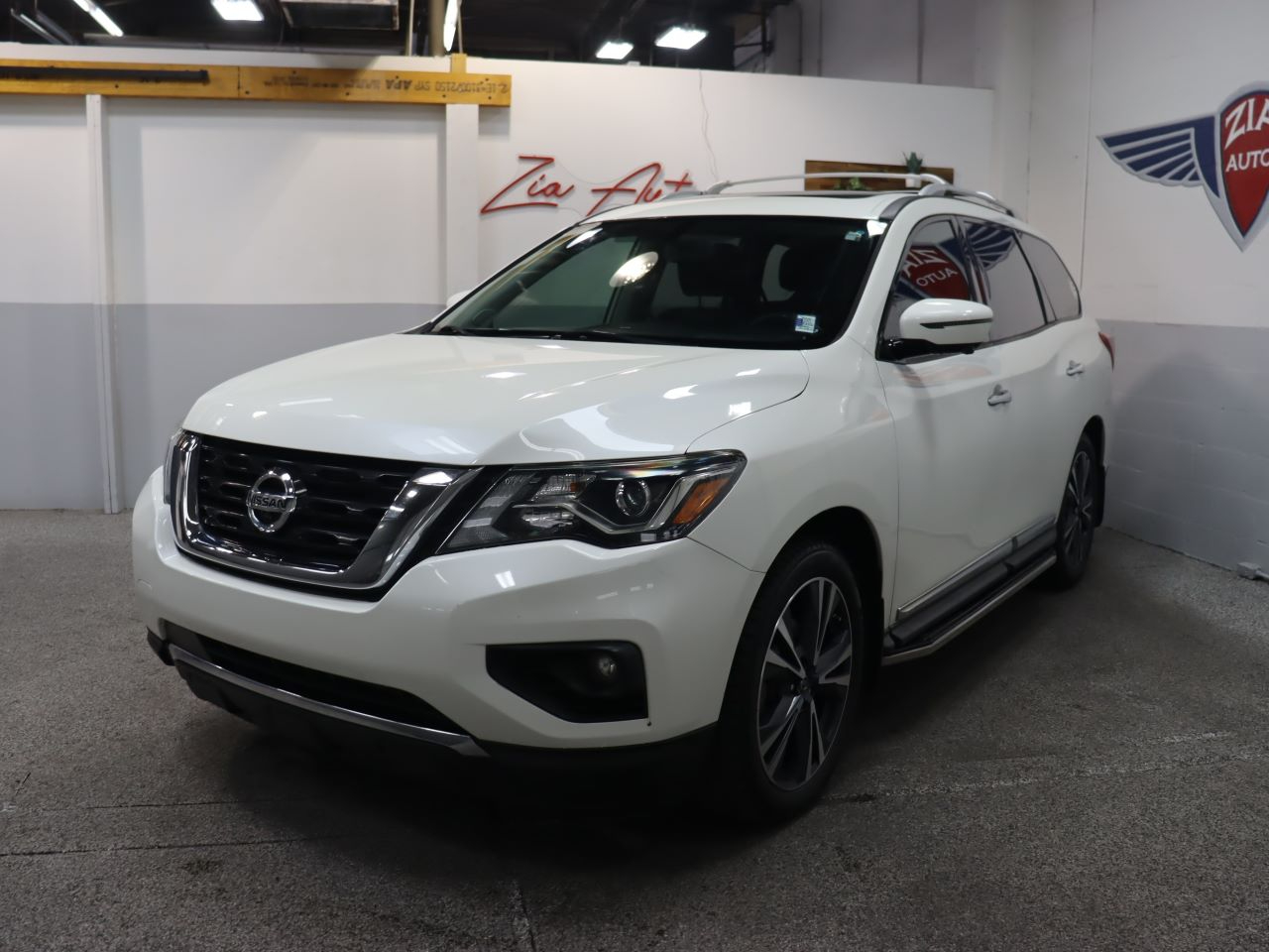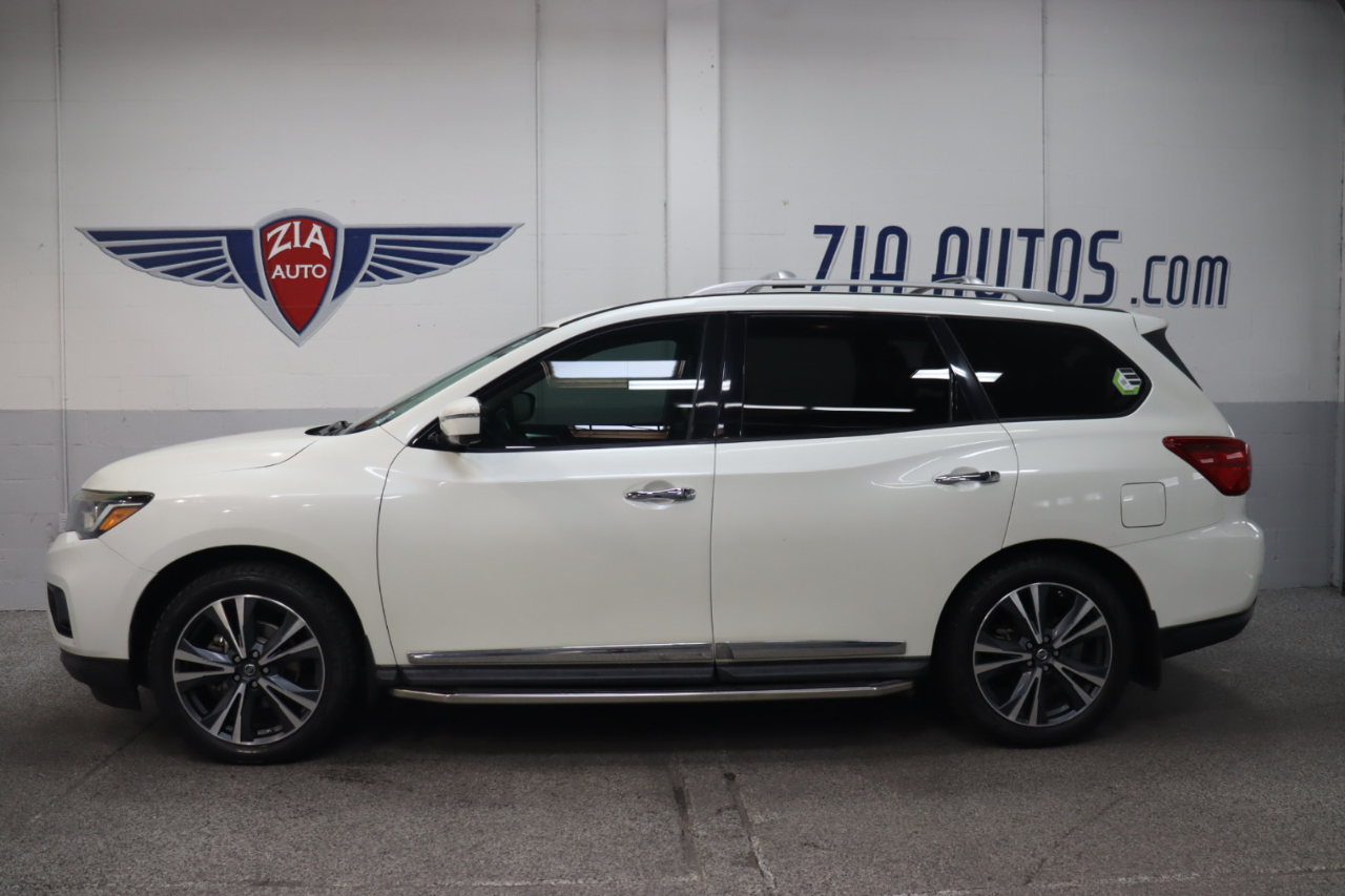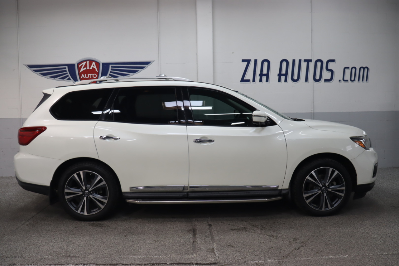 Offering premium good looks and performance to match, our 2019 Nissan Pathfinder Platinum is eye-catching in Pearl White! Powered by a 3.5 Liter V6 offering 284hp matched to an Xtronic CVT that delivers a comfortable ride. Our Front Wheel Drive SUV serves up handsome style that's perfectly accented by prominent aluminum alloy wheels, chrome side moldings, a tow hitch receiver, dual pane panoramic sunroof, and a motion-activated lift-gate, plus it shows off nearly 27mpg on the highway.The cabin of our Pathfinder Platinum features best-in-class passenger space and impressive amenities that make each day easier. Settle into the heated/cooled front leather seats and take note of the heated steering wheel, Nissan Intelligent Key, remote engine start, tri-zone automatic climate control, and the versatility of the EZ Flex seating system. Stay connected mile after mile with our NissanConnect with Navigation that works with your smartphone and the high-resolution color display with multi-touch control. With our premium Bose audio system with two USB connections, you'll travel smarter with available Sirius XM Travel Link and have your favorite music at your fingertips.Our Nissan Pathfinder features an around-view monitor, blind spot warning, rear sonar, intelligent cruise control, advanced airbags, and vehicle dynamic control/traction control. Our Pathfinder Platinum is an incredible choice for your active lifestyle. Powerful, stylish, luxurious, and spacious. Save this Page and Call for Availability. We Know You Will Enjoy Your ZIA Auto Test Drive Towards Ownership!