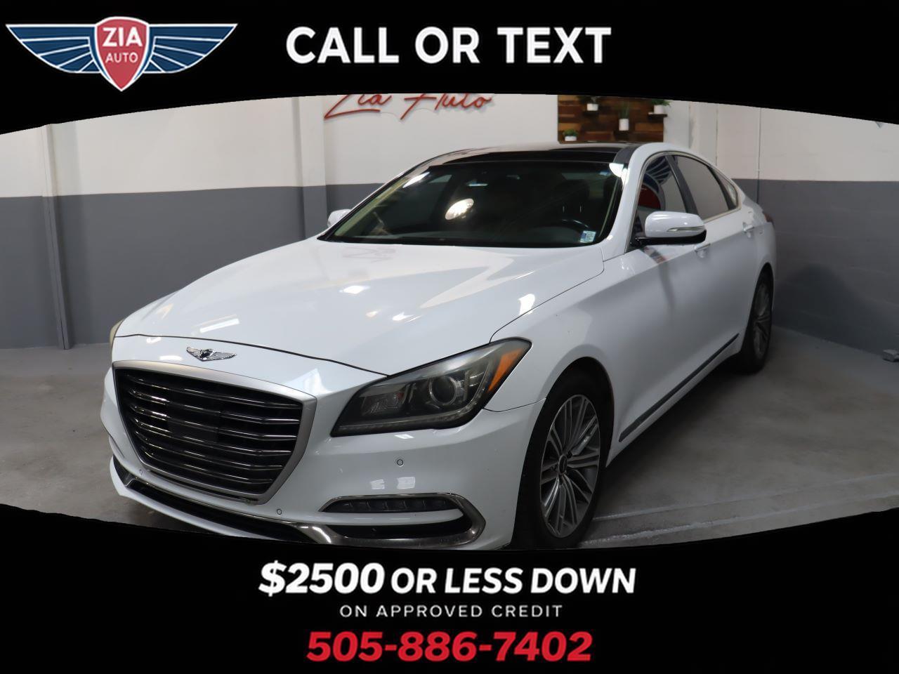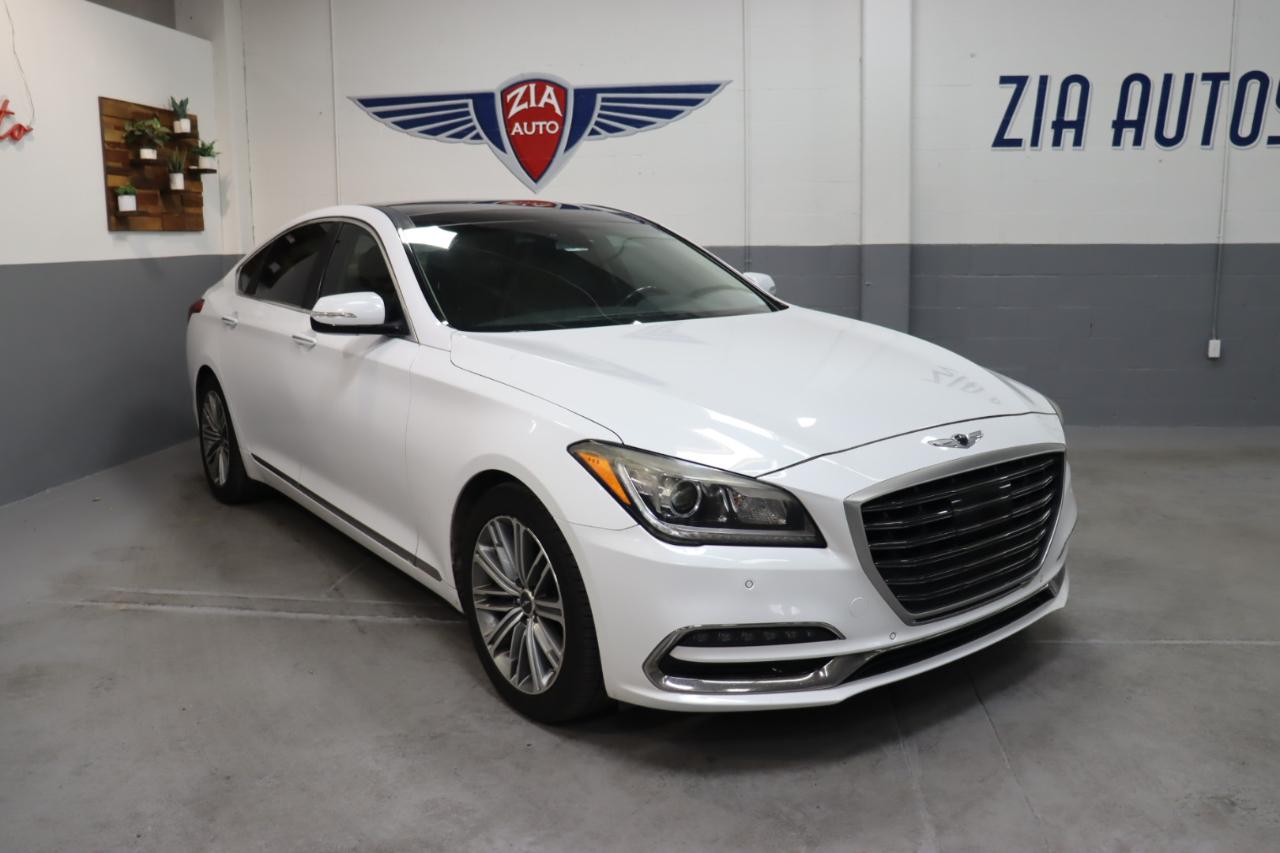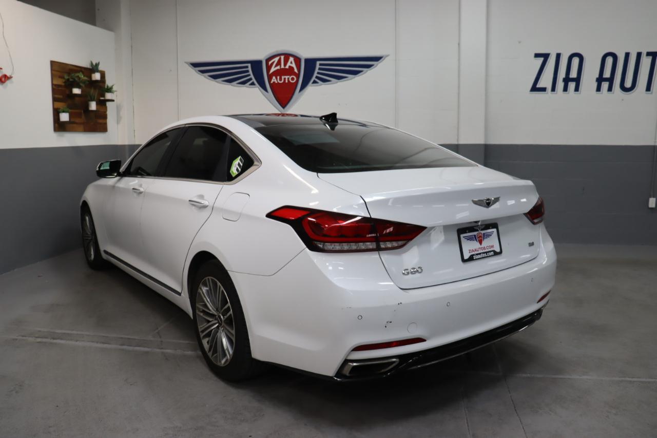 Stunning in Casablanca White, our 2018 Genesis G80 Sedan is an ideal blend of performance, safety, and luxury! Powered by a 3.8 Liter V6 that generates 311hp connected to an 8 Speed Automatic transmission for the ultimate in passing authority. This Rear Wheel Drive sedan rewards you with a satisfying driving experience as well as nearly 28mpg on the highway while showing off its elegant stance that's accentuated further with the signature crest grille, projector HID headlights, LED daytime running lights, beautiful alloy wheels, and chrome details. Bask in the masterfully-crafted G80 cabin that soothes and stimulates your senses. It's complete with heated leather seats, pushbutton start, dual automatic temperature control, power windows, and steering wheel-mounted controls. It's easier than ever to maintain a safe connection thanks to Genesis Connected Services, Bluetooth®, Apple Carplay®/Android Auto® compatibility, full-color navigation, and an impressive CD/MP3 sound system with available satellite radio. Our Genesis delivers performance, efficiency, and luxury, but it also provides a high level of peace of mind with a rearview camera, stability/traction control, ABS, smart cruise control, lane departure warning, and blind spot detection. Reward yourself with this game-changing G80 sedan today! Save this Page and Call for Availability. We Know You Will Enjoy Your ZIA Auto Test Drive Towards Ownership!