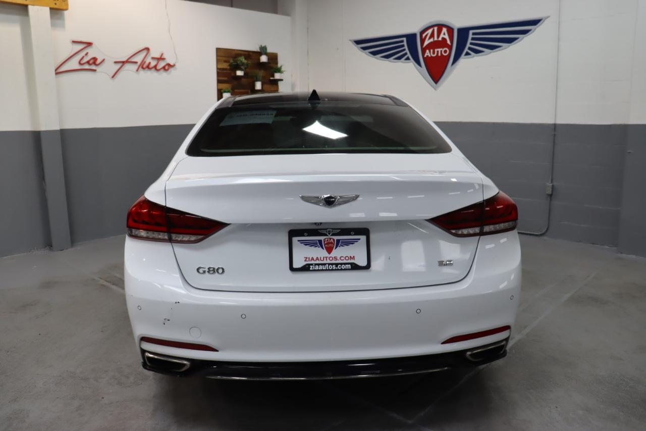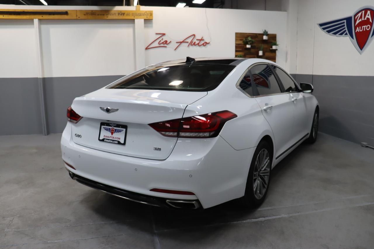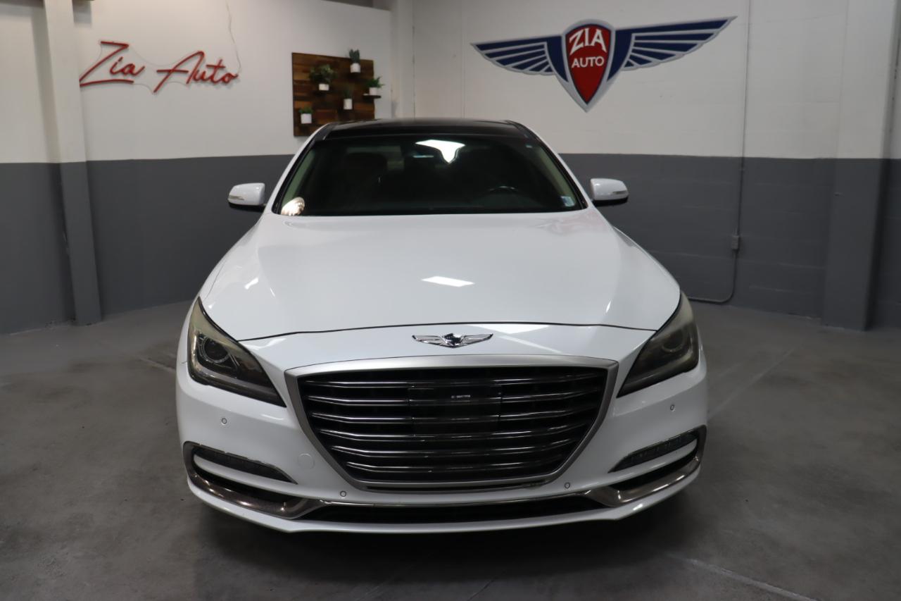 Stunning in Casablanca White, our 2018 Genesis G80 Sedan is an ideal blend of performance, safety, and luxury! Powered by a 3.8 Liter V6 that generates 311hp connected to an 8 Speed Automatic transmission for the ultimate in passing authority. This Rear Wheel Drive sedan rewards you with a satisfying driving experience as well as nearly 28mpg on the highway while showing off its elegant stance that's accentuated further with the signature crest grille, projector HID headlights, LED daytime running lights, beautiful alloy wheels, and chrome details. Bask in the masterfully-crafted G80 cabin that soothes and stimulates your senses. It's complete with heated leather seats, pushbutton start, dual automatic temperature control, power windows, and steering wheel-mounted controls. It's easier than ever to maintain a safe connection thanks to Genesis Connected Services, Bluetooth®, Apple Carplay®/Android Auto® compatibility, full-color navigation, and an impressive CD/MP3 sound system with available satellite radio. Our Genesis delivers performance, efficiency, and luxury, but it also provides a high level of peace of mind with a rearview camera, stability/traction control, ABS, smart cruise control, lane departure warning, and blind spot detection. Reward yourself with this game-changing G80 sedan today! Save this Page and Call for Availability. We Know You Will Enjoy Your ZIA Auto Test Drive Towards Ownership!